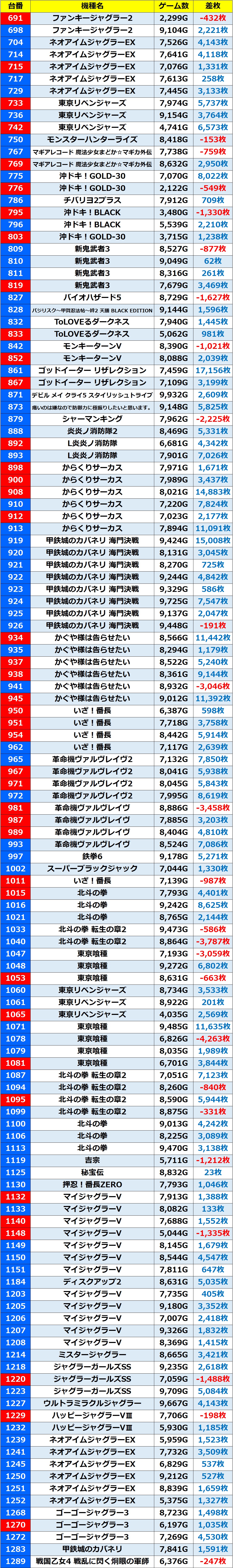 【結果】マルハン加島店 4月1日(水)【回胴の極意】